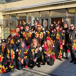 Also reservierten wir uns alle den Fasnachtssonntag, an dem normalerweise der Umzug in Neuler gewesen wäre und organisierten 2 Kurzauftritte in Altenheimen, dem DRK-Altenhilfezentrum Wiesengrund und dem DRK-Seniorenzentrum Hüttlingen bei denen wir dann - natürlich damals noch Coronakonform - alle frisch getestet und ohne Kontakt mit den Bewohner jeweils ein Ständchen gespielt haben.