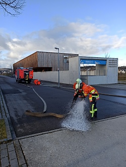 Neben theoretischen Kenntnissen wie Rechtsgrundlagen, stehen vor hauptsächlich praktische Ausbildung auf dem Programm. Vom fachgerechten Kuppeln der Saugschläuche, über das Aufstellen der 14 Meter langen Schiebleiter bis zum Einsatz von hydraulischen Rettungsgeräten reicht die Palette. Ein erweiterter Erste-Hilfe-Kurs gehört ebenso dazu, wie Einsatzübungen in den Formationen Löschgruppe und Löschstaffel. Am Ende der Ausbildung warten ein theoretischer Wissenstest und mehrere Übungen im Team, die von den Ausbildern beurteilt werden, auf die jungen Kameraden.
