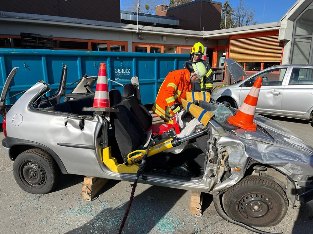Neben theoretischen Kenntnissen wie Rechtsgrundlagen, stehen vor hauptsächlich praktische Ausbildung auf dem Programm. Vom fachgerechten Kuppeln der Saugschläuche, über das Aufstellen der 14 Meter langen Schiebleiter bis zum Einsatz von hydraulischen Rettungsgeräten reicht die Palette. Ein erweiterter Erste-Hilfe-Kurs gehört ebenso dazu, wie Einsatzübungen in den Formationen Löschgruppe und Löschstaffel. Am Ende der Ausbildung warten ein theoretischer Wissenstest und mehrere Übungen im Team, die von den Ausbildern beurteilt werden, auf die jungen Kameraden.