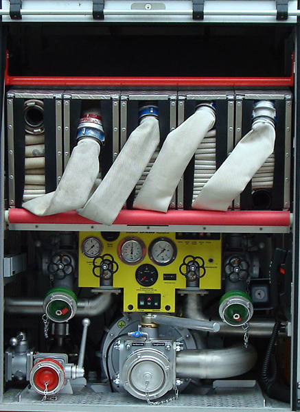 Als Besonderheit sind im Heck 300m B-Schlauch in Buchten untergebracht, die fahrend verlegt werden können.