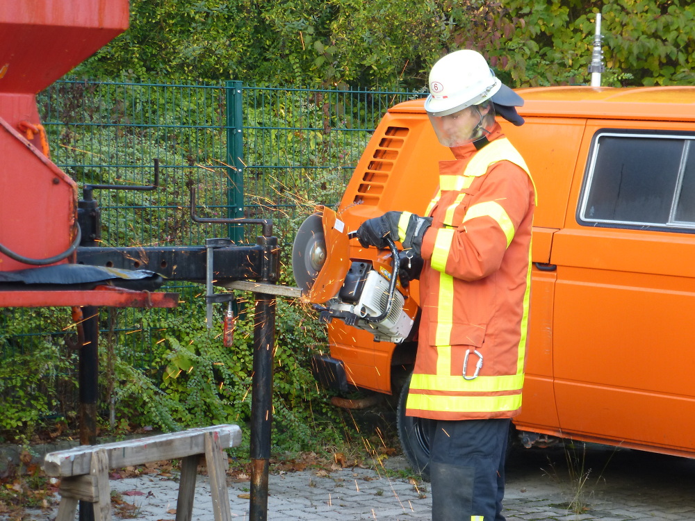 Am Montag den 8. Oktober um 19 Uhr begann die Ausbildung mit Rechtsgrundlagen und Organisation der Feuerwehr. Es folgten verschiedene Themen laut Lernzielkatalog der Landesfeuerwehrschule Baden Württemberg. Die Lernziele wurden sinnvoll in theoretischem Unterricht sowie praktischen Übungen durchgeführt. Am ersten Übungswochenende wurde der Schwerpunkt Brandeinsatz durchgenommen. Dabei lernten die Teilnehmer z.B. die Vornahme eines gefüllten Schlauches im Innenangriff, welche Tricks für eine leichtere Vorgehensweise angewendet werden können. Außerdem wurde auch auf die Führungsqualitäten als Truppführer geachtet. Anfang der zweiten Woche mussten die Lehrgangsteilnehmer die Gefahrgutkennzeichnung erlernen. Dies und noch viele andere Fragen wurden am Freitag Abend in der theoretischen Prüfung abgefragt. Am letzen Wochenende befasste sich der Lehrgang mit der technischen Hilfeleistung. Dabei wurden den neuen Truppführern verschiedene Führungsaufgaben gestellt, die sie erarbeiten mussten. Somit konnte nach dem Mittagessen mit der praktischen Prüfung begonnen werden.